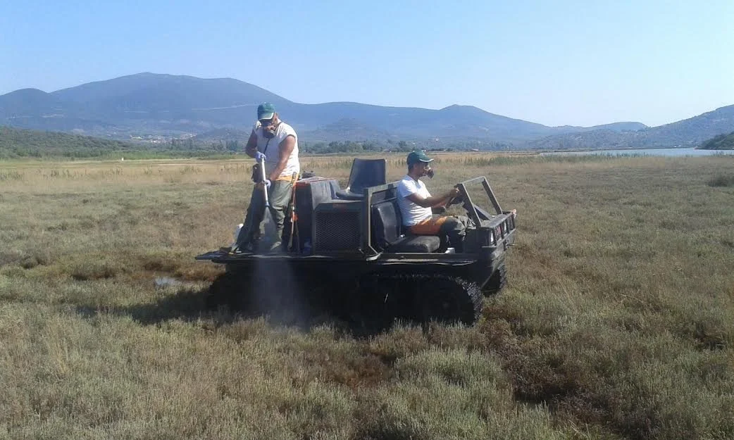 Στην ομάδα έργου συμμετέχουν πάνω από 20 ψεκαστικά συνεργεία, 30 συνεργεία δειγματοληπτών και ελέγχου, ειδικό αμφίβιο όχημα 8Χ8, 4 drones και 100 παγίδες συλλογής κουνουπιών.