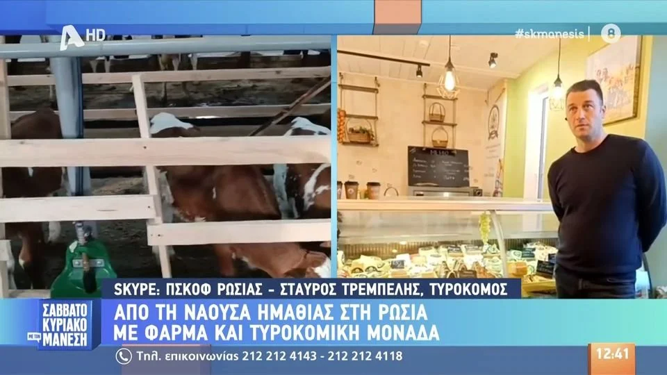 Στην τηλεόραση του Alpha φιλοξενήθηκε πριν λίγες μέρες ο Σταύρος Τρεμπελής, ο δραστήριος τυροκόμος από τη Νάουσα, ο οποίος αποφάσισε να ανοίξει τα φτερά του και να κάνει μια επιχείρηση στην περιοχή Πσκοφ της Ρωσίας, 300 χλμ. από την Αγία Πετρούπολη.