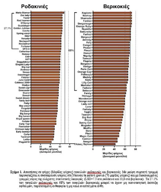 Στη βερικοκιά, συσσώρευση ψύχους τη χειμερινή περίοδο ήταν μικρότερη από τις απαιτήσεις μερικών ποικιλιών. Το 68% των ποικιλιών που μελετήθηκαν είχαν απαιτήσεις σε ψύχος μεγαλύτερη από την ελάχιστη στατιστική διαφορά που βρέθηκε (60-80 μερίδες ψύχους). Έχοντας υπόψη πως η φετινή συσσώρευση ψύχους ήταν παρόμοια με το έτος 2020, να σημειωθεί πως στη Βόρεια Ελλάδα είχαμε μειωμένη παραγωγή ή και καθόλου παραγωγή σε μερικές ποικιλίες βερικοκιάς το έτος 2020, ενώ στην Κεντρική Ελλάδα αναφορές είχαμε για μηδενική παραγωγή.