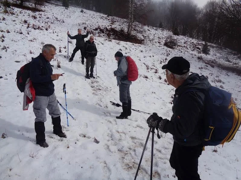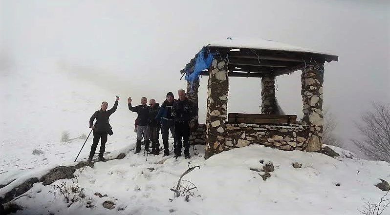 Κατά τη διάρκεια της διαδρομής όπως πεζοπορούμε, κοφτές πλαγιές και δένδρα γυμνά από φύλλωμα μας περιτριγυρίζουν. Ξαφνικά ένα πέπλο ομίχλης μας τύλιξε μαζί με ελαφρά χιονόπτωση. Ανεβαίνοντας ψηλότερα το χιόνι τριγύρω, μας ταλαιπωρεί, όμως η ομάδα σήμερα είναι αποφασισμένη να φθάσει ψηλά στην κορυφή.