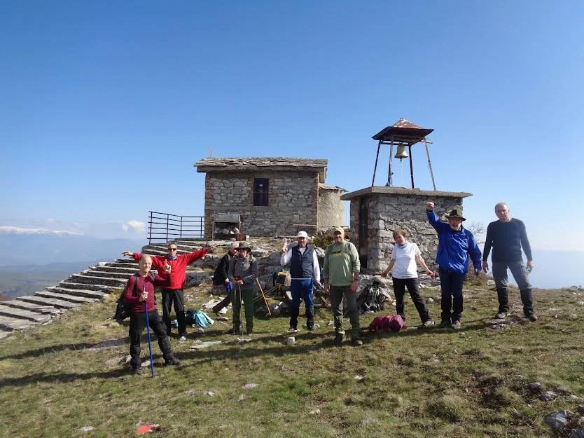 Ο βραχώδης λόφος πάνω στην οποία βρίσκεται κτισμένο το εκκλησάκι, ο συννεφιασμένος ουρανός, ο δυνατός ο ανοιξιάτικος αέρας, δημιουργούν στην ομάδα ανάμικτα αισθήματα.