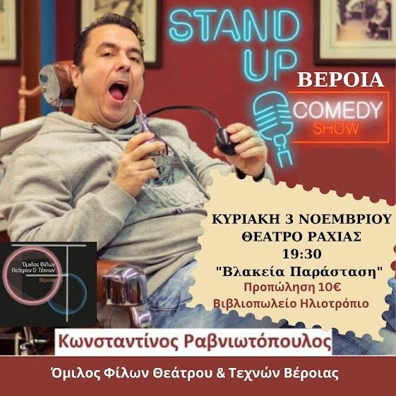 Τον Κωνσταντίνο Ραβνιωτόπουλο, πρώτο διδάξαντα του κλασικού standup comedy στην Ελλάδα, υποδέχεται ο Όμιλος Φίλων Θεάτρου & Τεχνών Βέροιας στο θέατρο της Ραχιάς, την Κυριακή 3 Νοεμβρίου.