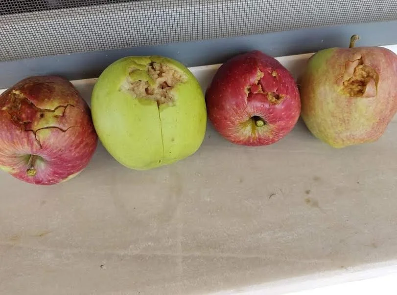 Σύμφωνα με τις πρώτες εκτιμήσεις, το χαλάζι κατέστρεψε την παραγωγή μήλων περίπου στο 80% του αγροκτήματος.