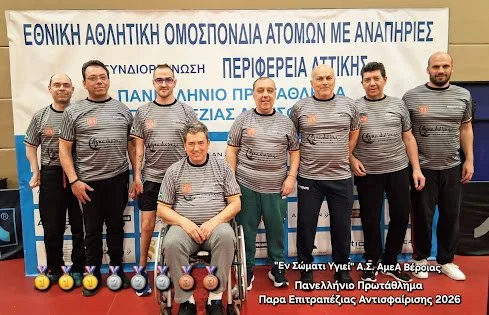 Με τον καλύτερο δυνατό τρόπο άνοιξε η αυλαία των Πανελληνίων Πρωταθλημάτων για το σωματείο μας! Στο Στάδιο Ειρήνης & Φιλίας, όπου διεξήχθη το Πανελλήνιο Πρωτάθλημα Παρα Επιτραπέζιας Αντισφαίρισης 2026 το περασμένο τριήμερο 3-5 Απριλίου, το "Εν Σώματι Υγιεί" Α.Σ. ΑμεΑ Βέροιας, αγωνίστηκε πάνοπλο με οκτώ αθλητές σε τέσσερις ατομικές κατηγορίες και 3 ζευγάρια διπλών, αριθμό που αποτελεί ρεκόρ συμμετοχών για το σωματείο μας.