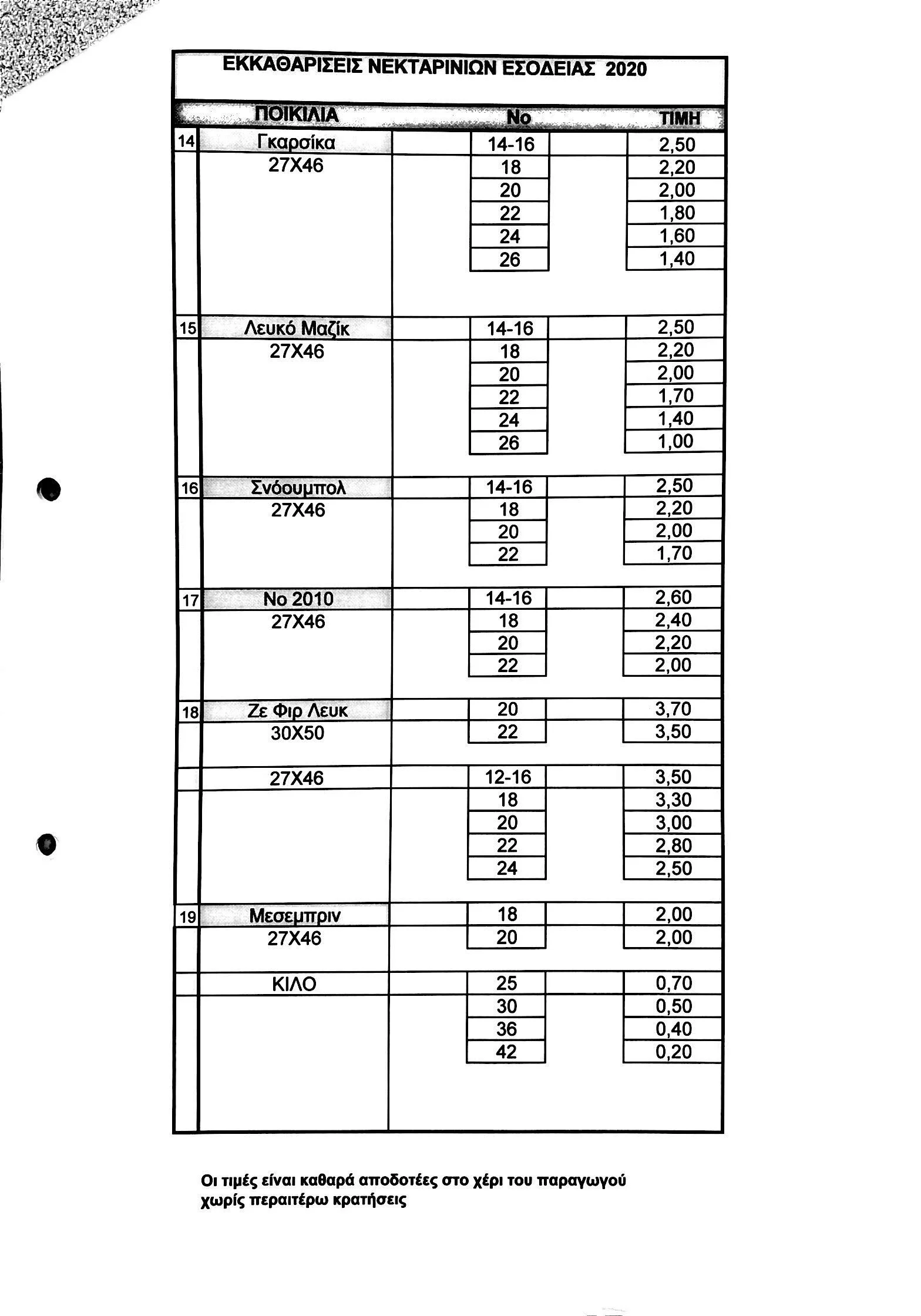 Τιμές εκκαθάρισης για τα ροδάκινα και τα νεκταρίνια εσοδείας 2020 ανακοίνωσε ο Αγροτικός Συνεταιρισμός Νάουσας. Δείτε όλες τις τιμές στους πίνακες: