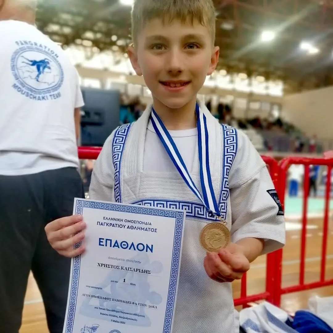 Στην κατηγορία 8-9 ετών - 34 κιλά ο Χρήστος Καισαρίδης έπαιξε τελικό με σιγουριά και απιφασιστηκότητα και με ισορροπία σε έδαφος αλλά και όρθια μάχη πήρε το χρυσό μετάλλιο με σκορ 9-5 από τον αντίπαλο του.