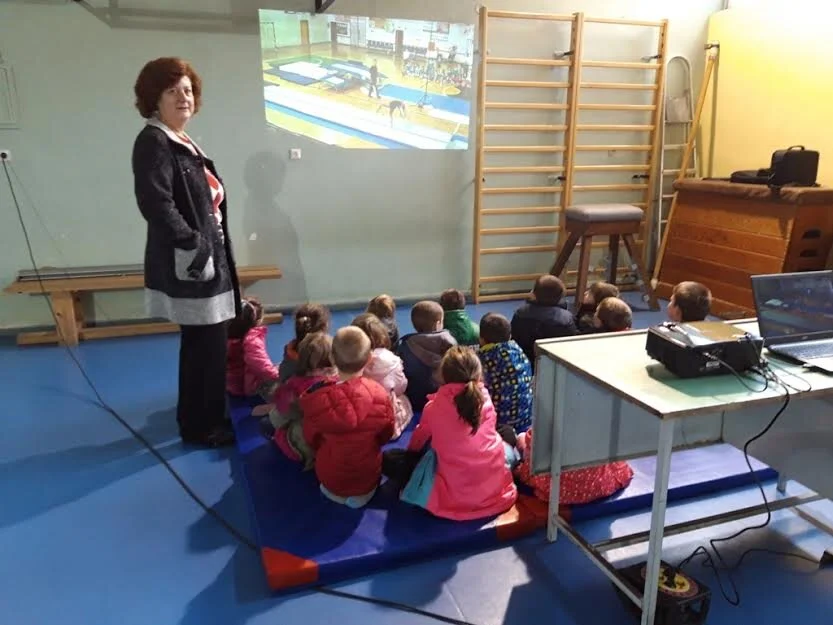 Οι μικροί μαθητές είχαν την ευκαιρία μέσα από προβολή βίντεο να γνωρίσουν ποια είναι τα αντρικά και ποια τα γυναικεία αγωνίσματα της ΕΝΟΡΓΑΝΗΣ ΓΥΜΝΑΣΤΙΚΗΣ.