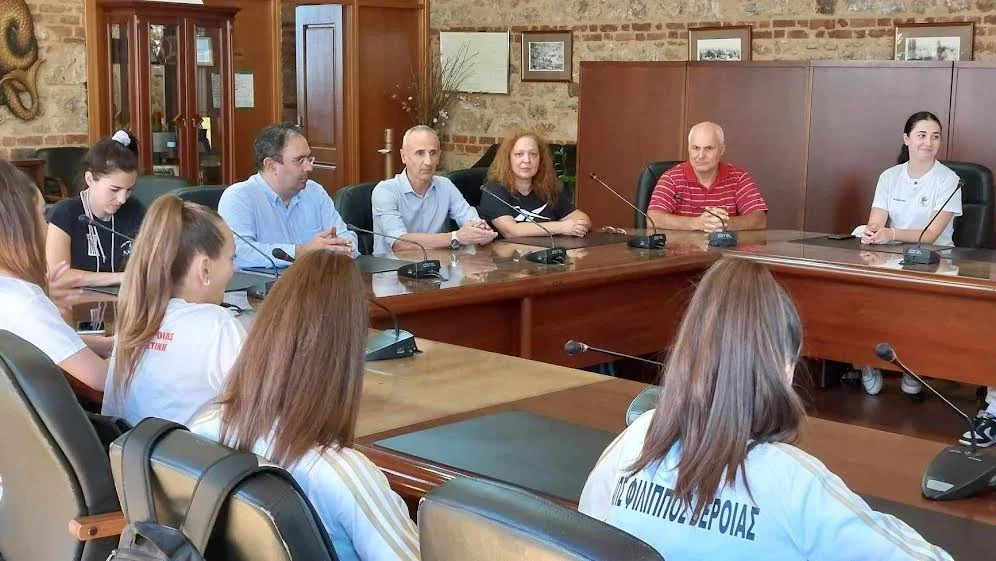 Τις πρωταθλήτριες του Τμήματος Αισθητικής Ομαδικής Γυμναστικής του Φιλίππου που κατέκτησαν τη 2η, 3η και 5η θέση στο Βαλκανικό πρωτάθλημα στο Μπουργκάς της Βουλγαρίας, υποδέχθηκε ο δήμαρχος Βέροιας, Κωνσταντίνος Βοργιαζίδης.