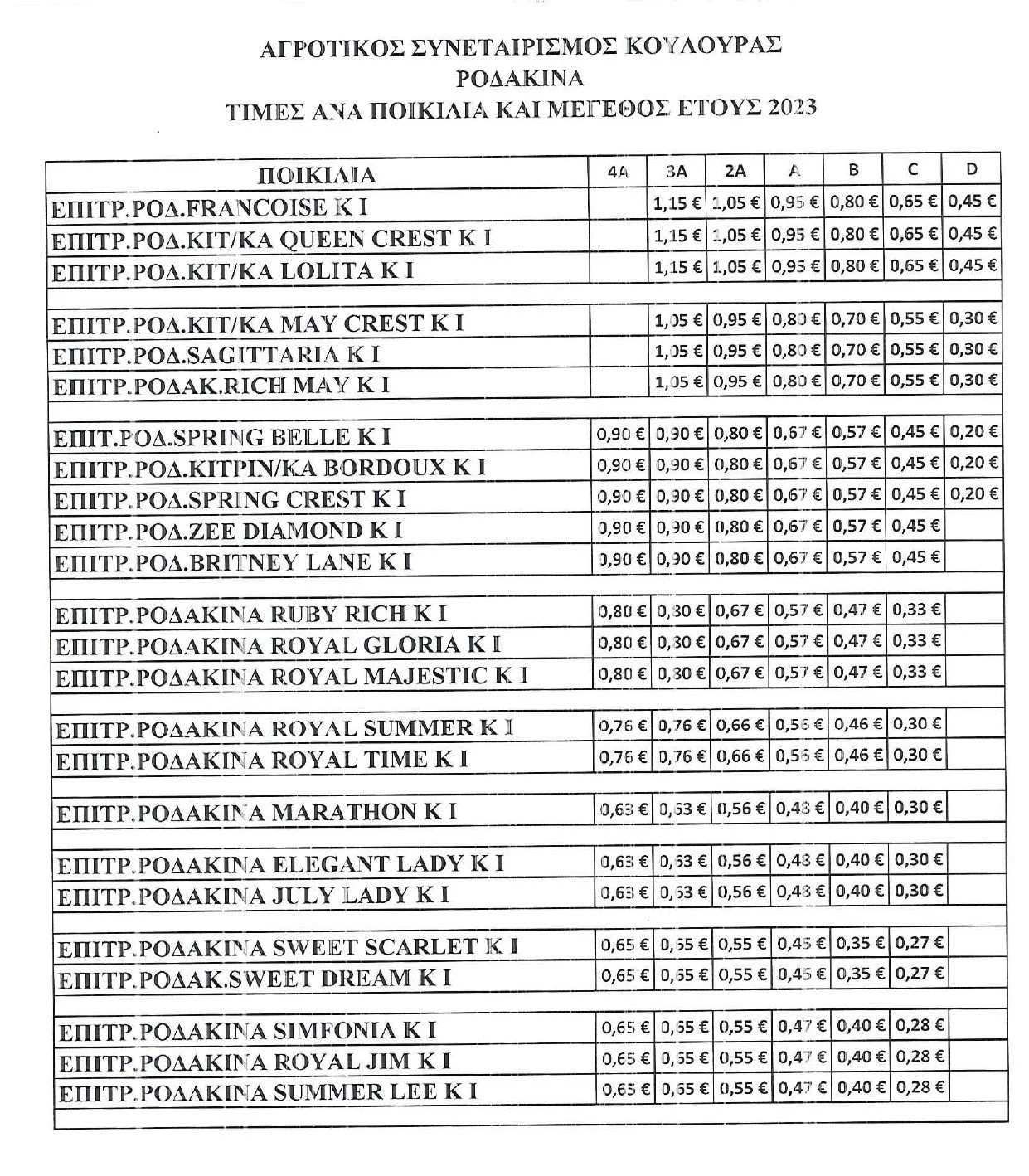 Τιμές εκκαθάρισης ροδάκινων και νεκταρινιών εσοδείας 2023 ανακοίνωσε ο Αγροτικός Συνεταιρισμός Κουλούρας. Δείτε τις τιμές στους πίνακες: